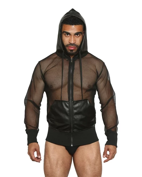 Open Air Sexy Faux Leather Zip-up Hoodie
